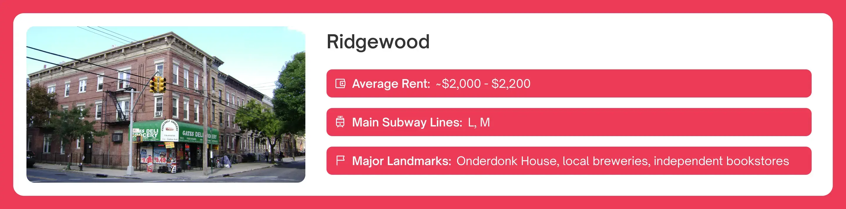Whether you’re commuting to Manhattan or freelancing from home, Ridgewood ranks as one of the best affordable neighborhoods in NYC that doesn’t feel like a compromise.