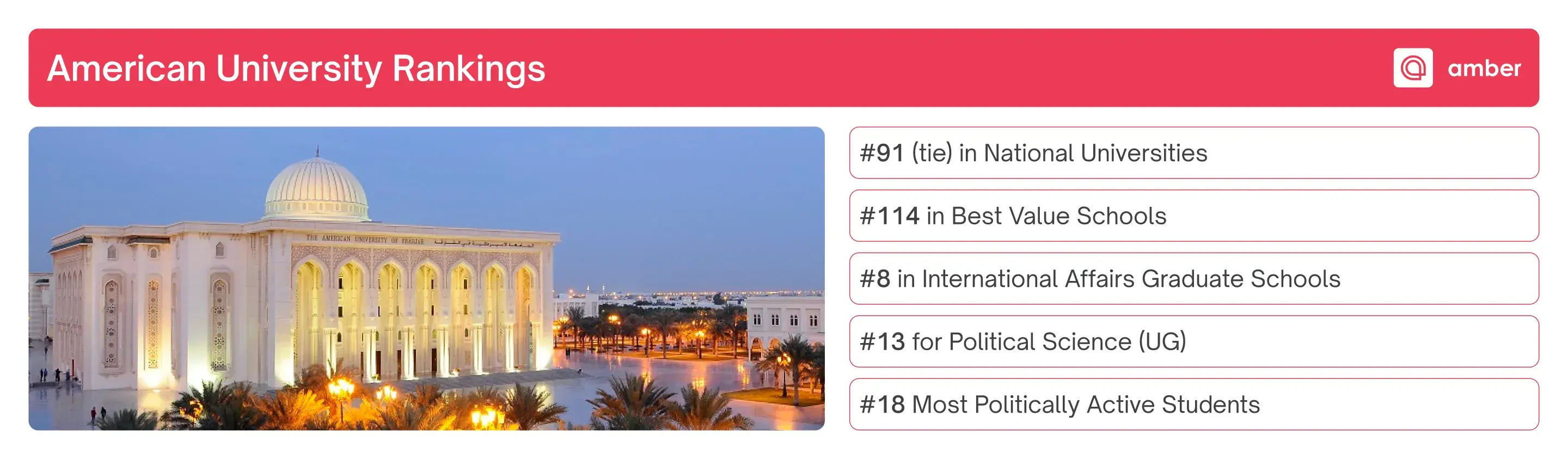 These rankings are an indication of the university’s steady progress in delivering a well-rounded, globally connected education experience with solid American University tuition value and generous scholarship options.