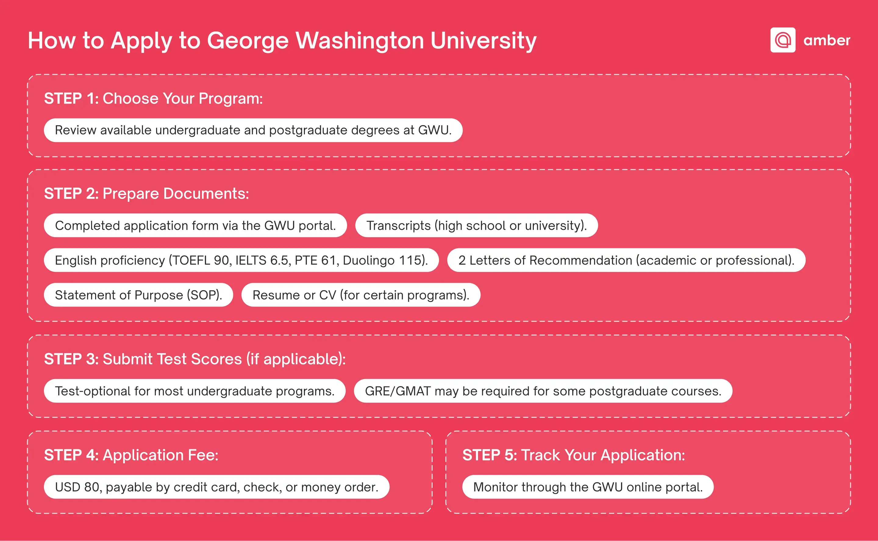 The application process for GWU admissions is designed to be clear and structured for all international applicants. Here's a step-by-step guide: