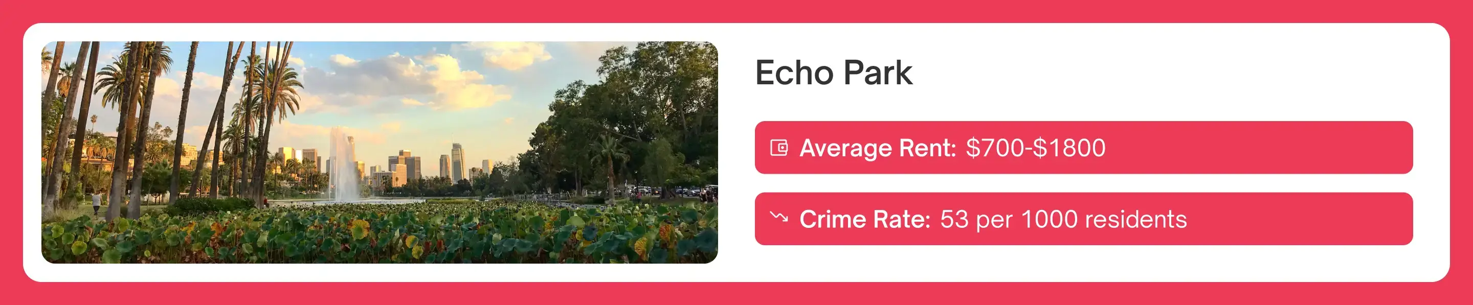 If you’re looking for a home in a neighborhood that’s developing into a posh locale but still offers budget-friendly rental homes, Echo Park is the perfect choice. The diverse cultural scene of this neighborhood is a favorite of students from nearby universities such as the University of California, Los Angeles (UCLA), Los Angeles City College (LACC), and the University of Southern California (USC), making student housing in Echo Park a practical and popular option.