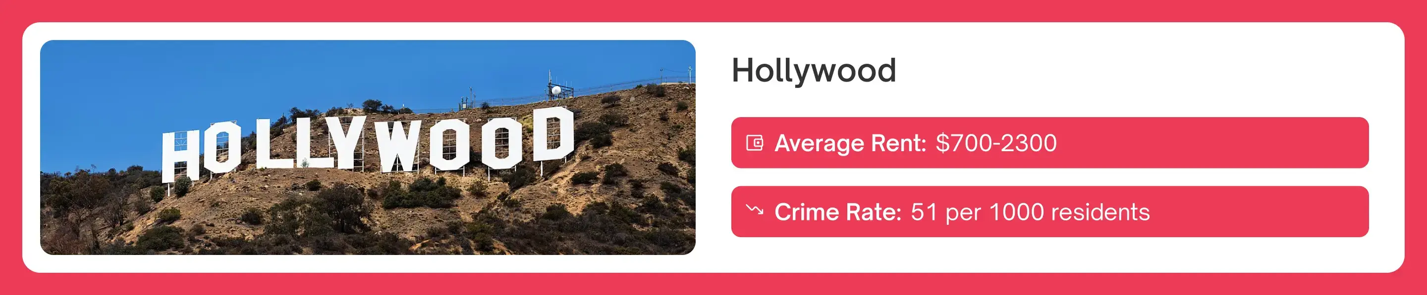 This centrally located area is among the most popular, affordable neighborhoods in LA, thanks to its proximity to freeways and major attractions. Hollywood exudes a distinct charm owing to the hiking trails of Griffith Park and the world-famous Hollywood sign views.