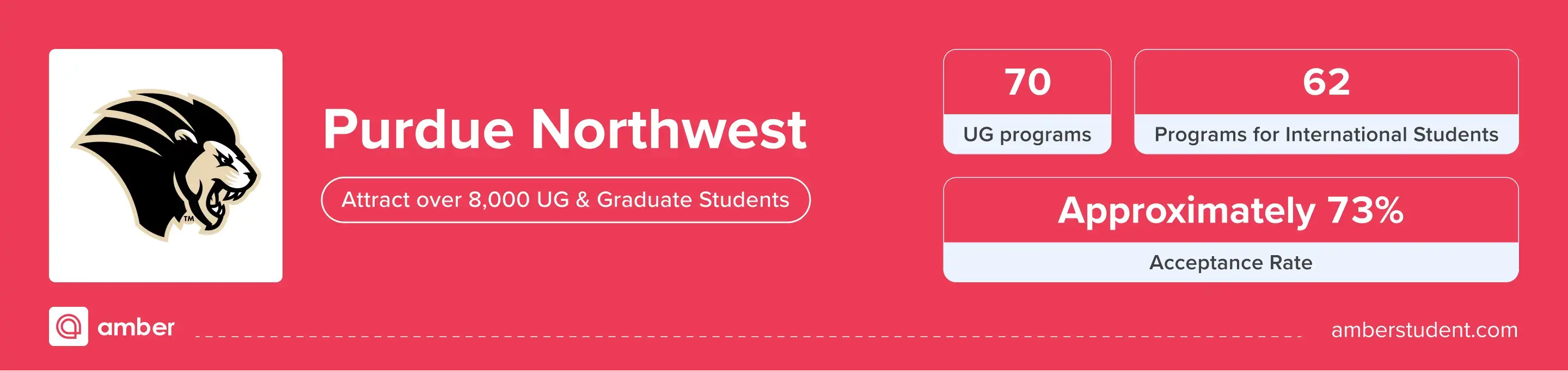 Known for its commitment to academic excellence, Purdue Northwest admissions attract over 8,000 undergraduate and graduate students across both campuses. With an acceptance rate of approximately 73%, it offers a welcoming yet selective admissions process for international applicants.