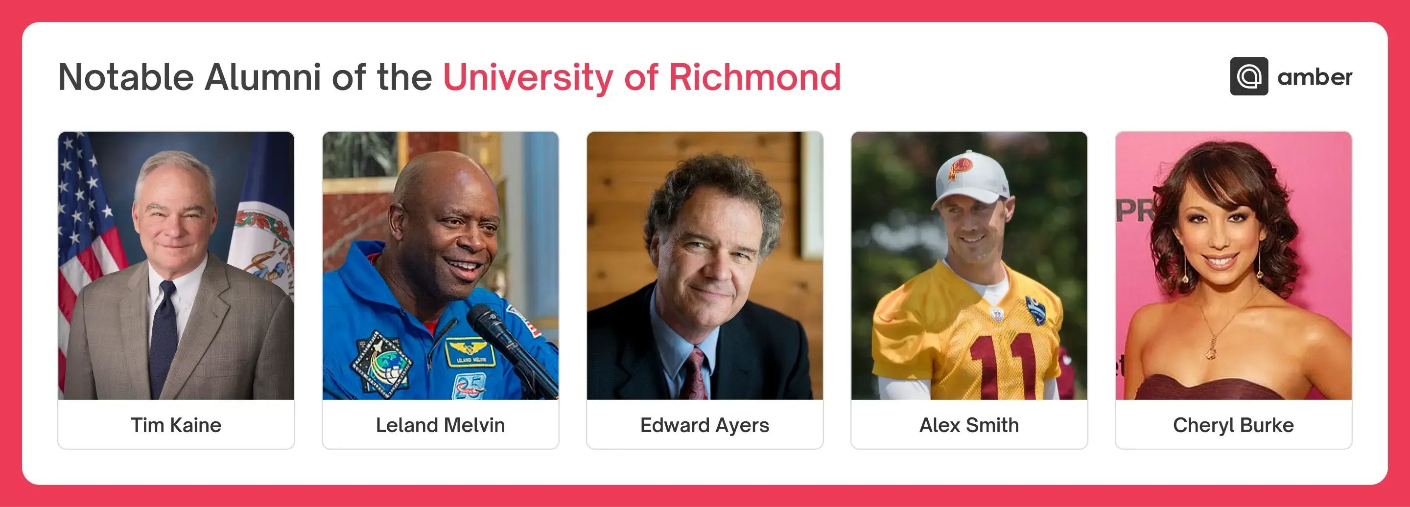 Developing leaders, innovators, and changemakers who go on to make significant contributions in a range of fields is a proud tradition of the University of Richmond. Its alumni reflect the excellence and diversity the university fosters in everything from pop culture to politics.